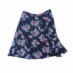 LOFT 100% Silk Floral Midi Skirt Size 0 Brown High Waist