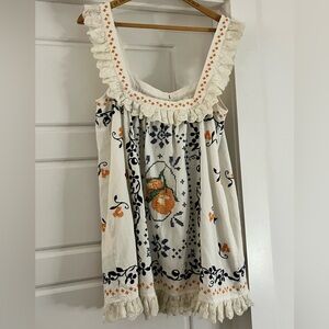 Free People Bali Embroidered Sleeveless Dress with Floral Lemon Design