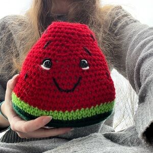 Hand Crochet ed Happy Little Watermelon Plushie Stuffed Animal!