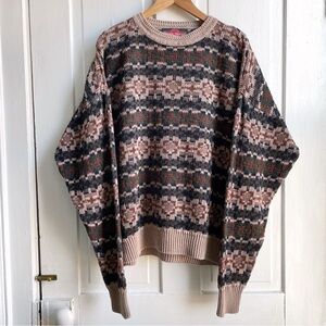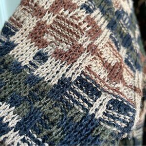 Vintage 80s/90s Stove Haven Natural Fiber Cotton & Ramie Knit Grandpa Sweater. Marked a size large, it’ll have a more baggy/oversized fit as a large. See measurements below. Marked 55 ramie & 45 cotton so great for your natural fiber collection. Not a super thick sweater, so great for layering or spring/fall. In good vintage condition, just a little pilling around the high wear areas. Nice neutral color scheme.