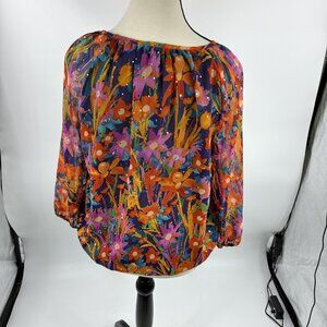 Cathy Daniels Womens Multicolor Floral Sequin Blouse Top Size M Pullover Sheer
