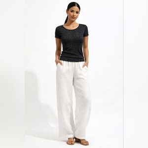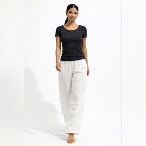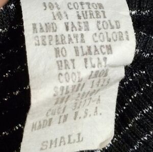 Elegant Black and Silver Striped Short Sleeve Top. Size S .
