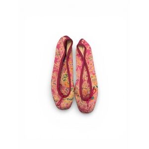 HollyWould Cabana Red and Pink Floral Fabric Ballet Flats Size EU 40