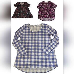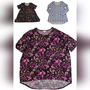 3 LuLaRoe Patterned Tops Size 2XL Floral Plaid Pretty Casual 0926-i
