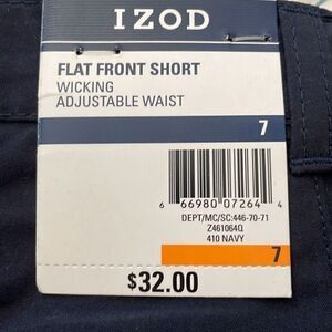 NWT! Izod Navy Blue Flat Front Shorts Size 7