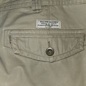 Polo Ralph Lauren Men's Gellar Cargo shorts known for their durable cotton twill fabric& relaxed fit 40T..preowned normal wear good condition..Khaki...missing closure button