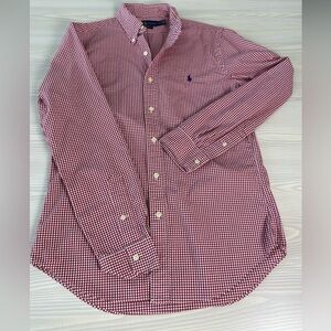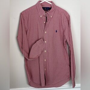 Ralph Lauren Slimfit Medium classic red gingham check button down long sleeve shirt. 100% cotton.