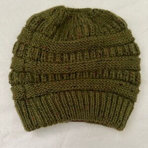 C.C Women’s Green Speckled Knit Beanie with Ponytail Opening