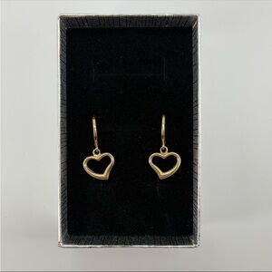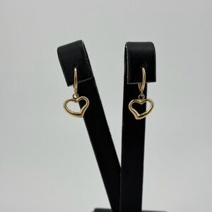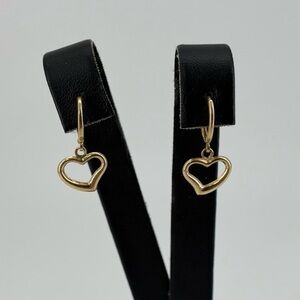 14K Yellow Gold Heart Dangle Huggie Hoop Earrings real Gold Drop 1g New