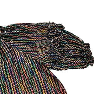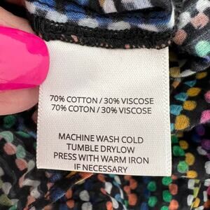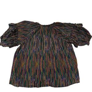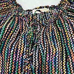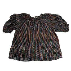 Ramy Brook Womens Large Eugenia Ruffle Sleeve Top Rainbow Dot Stripe Split Tie Neck Smocked Flowy Ruched