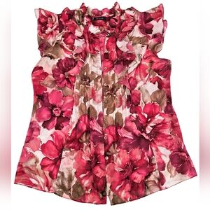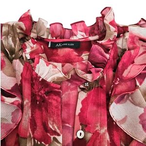🌷AK Anne Klein Pink & Cream Ruffled Floral Blouse🌷