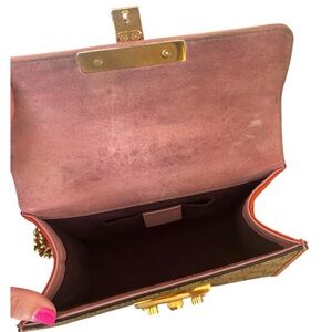 Very good preowned condition. Please review al photos carefully. Some tarnishing and stretching on the hardware and discoloration only on the inside flap. Otherwise excellent.
