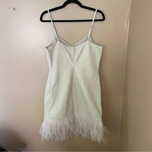 Lamarque Abella Dress Lambskin Leather Feather trim bone white mini Revolve M