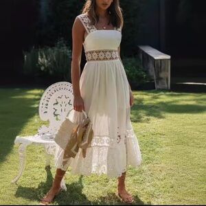 Worn only once, this dress is in perfect condition. Its elegant and feminine design makes it ideal for summer strolls, romantic dinners, a chic day in the Hamptons, or your next vacation. Lightweight and comfortable, yet effortlessly stylish — a must-have for your summer wardrobe.