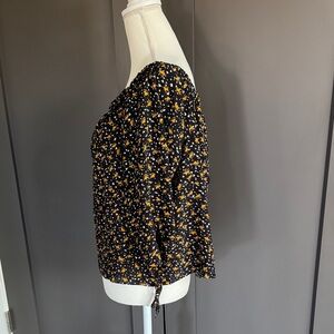 Madewell Black and Yellow Floral Blouse 100% Silk Size L