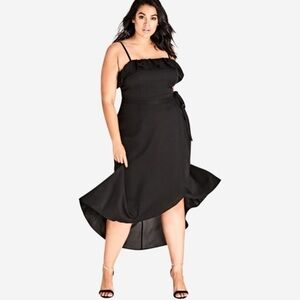 NWT City Chic Sweet Escape Spaghetti Strap Wrap Skirt Midi Dress In Black