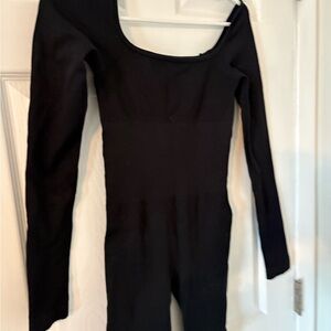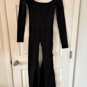 Black Long Sleeve Flare Jumpsuit Ribbed Stretch Scoop Neck S