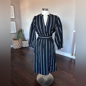 J. Crew Cinched-Waist Cotton Poplin Midi Dress Black & Ivory Stripe LG Worn 1x