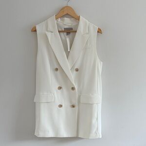 Chic white sleeveless blazer with a sleek design. Perfect for the office and everyday wear.