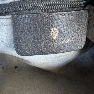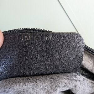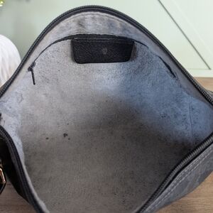 Design: Features the signature tonal GG monogram pattern and a circular interlocking G leather patch. Hardware: Gold-toned zipper and strap attachments. Style: Originally a clutch or large pouch, many vintage models are often modified with added rings to be worn as a crossbody bag.
