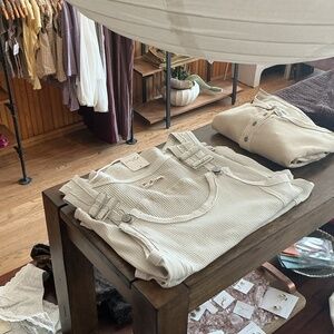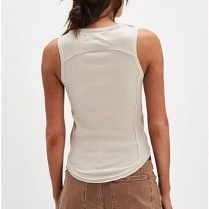 A staple tank gets a touch of edge with this hardware-adorned style from We The Free, featured in a ribbed fabrication with overall-inspired straps for an unexpected accent.