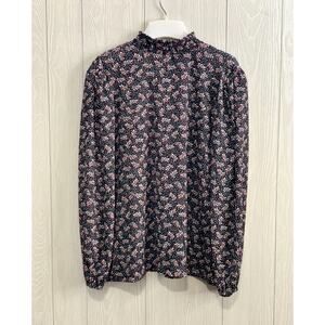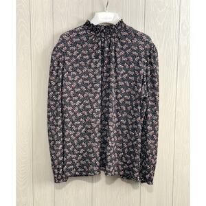 Loft Black Floral Mock Neck Long Sleeve Top Medium