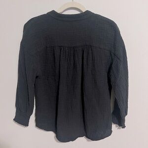 Evereve Eleanor smocked gauze black long sleeve top.