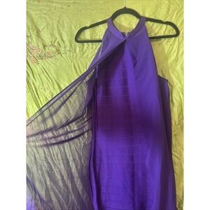 Venus Bodycon Dress Purple Bandage Dress Chiffon Overlay Halter Neck Size 8 NWOT