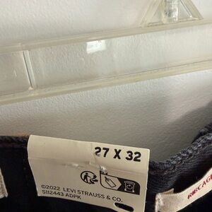 Sleek and modern black jeans. Ideal for everyday wear. Timeless Levi's style. 27x32.