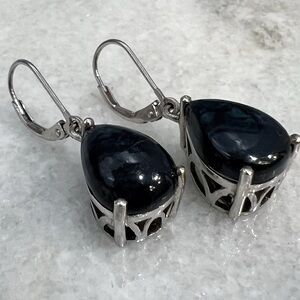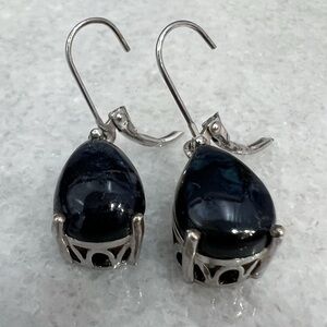 Beautiful and unique Australian Vivianite teardrop shaped stones set in sterling silver with platinum overlay