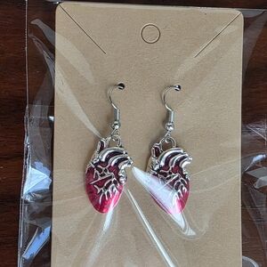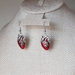 Elegant silver and red heart earrings perfect for any occasion. Add a touch of gore to your outfit. A little bit edgy, a little goth, these anatomical heart earrings go with a lot of different jewelery as pictured, but they are also great alone.