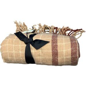 Hearth & Hand With Magnolia Tan & Red Plaid Throw Blanket With Fringe 60"x50"