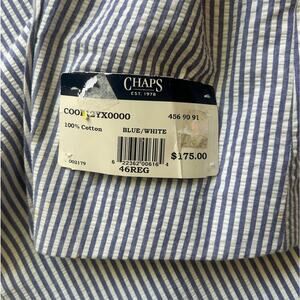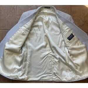 Vintage CHAPS Seersucker Blazer Mens 46R Blue White Stripe Summer Jacket NWT