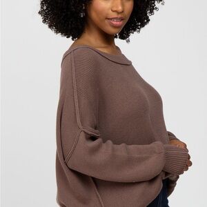 PinkBlush Brown Exposed Seam Side Slit Maternity Sweater