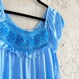Satin Nightgown Long Lounge Dress Light Blue Rosette Ruffle Womens L Grandmacore