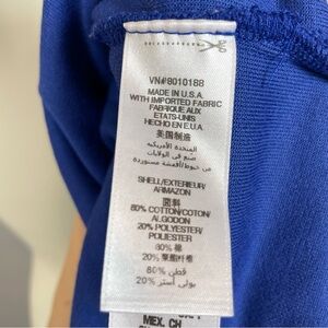 Y2K-style Juicy Couture Black Label terrycloth dress with a decorative lace up detail on the sides of the bodice in white. White trim on neckline spaghetti straps that crisscross in the back. 80% Cotton, 20% Polyester. Slits on the sides. Scoop neck. Pull-on style. Blueish color.