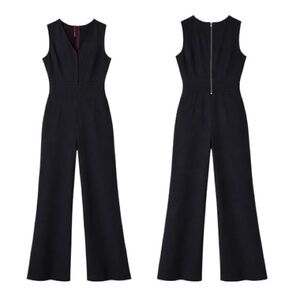 Spanx Perfect Sleeveless Jumpsuit Black 1X Wide Leg Shaping V-Neck Career Chic