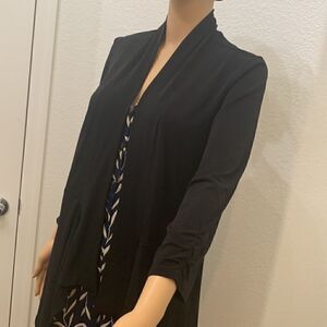 Chico’s Size 0 Black V Neck 3/4 Sleeves Peplum Waist Polyester Spandex Jacket