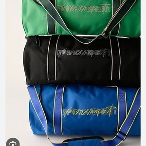 Still in packaging! (I also have green available, please check my closet for listing.) Stylish and durable, the Free People blue sports duffle bag is perfect for gym and travel. Featuring a spacious interior and sturdy handles, it's your ideal companion for any adventure.