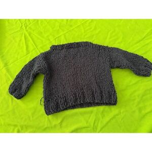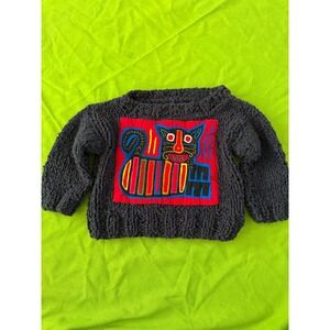 Vintage Handmade Mola Cat Patch Chunky Knit Sweater Black Toddler Kids Artisan