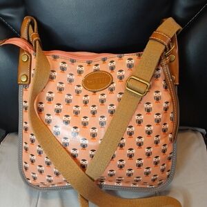 Vintage Fossil Coated Canvas & Leather Owl Print Crossbody Bag