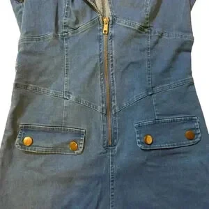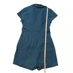 VGT Fashion Nova Women's Denim Zip Up Short Jumpsuit with 2 Front Pockets M
