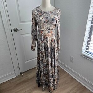 Peruvian Connection Floral Paisley Pima Cotton Long Sleeve Maxi Dress Grey Small