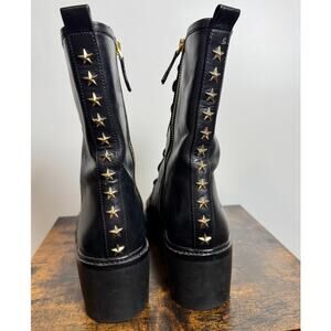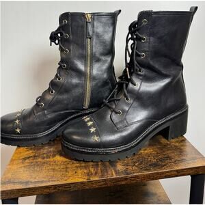 Michael Kors Cody Lace Up Boots 9 M Metallic Stars Stud Zip black leather