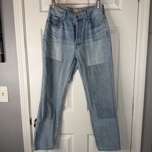 Modern, effortless Everlane patchwork jeans in a flattering light wash. These high-quality denim jeans feature subtle fading and unique patch panel details that give them a cool, modern vintage-inspired look.