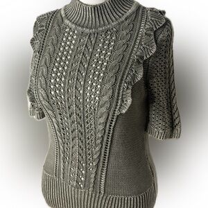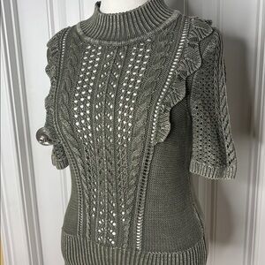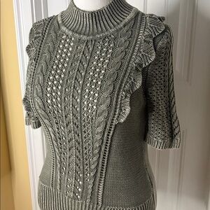 WHBM White House black market large knit ruffle sweater forever olive green L
