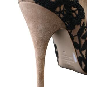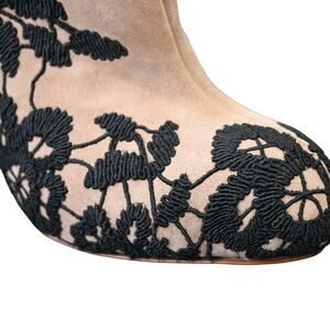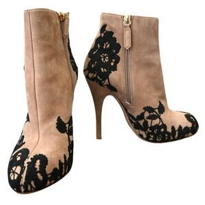 Valentino Garavani Light Brown Suede Floral Lace Heeled Zip Booties Size 37