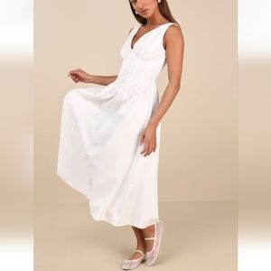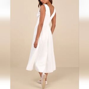 Lulus NWT Lettie White Poplin Plunge Neck Midi Dress