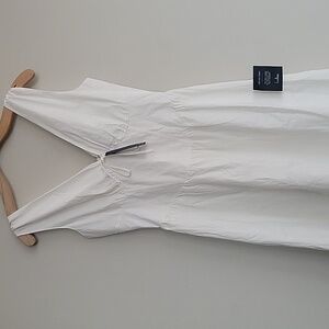 Lettie White Poplin Plunge Neck Midi Dress Size S