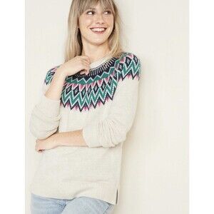 Old Navy 2X Plus Fair Isle Sweater Cream Nordic Cozy Winter Pullover